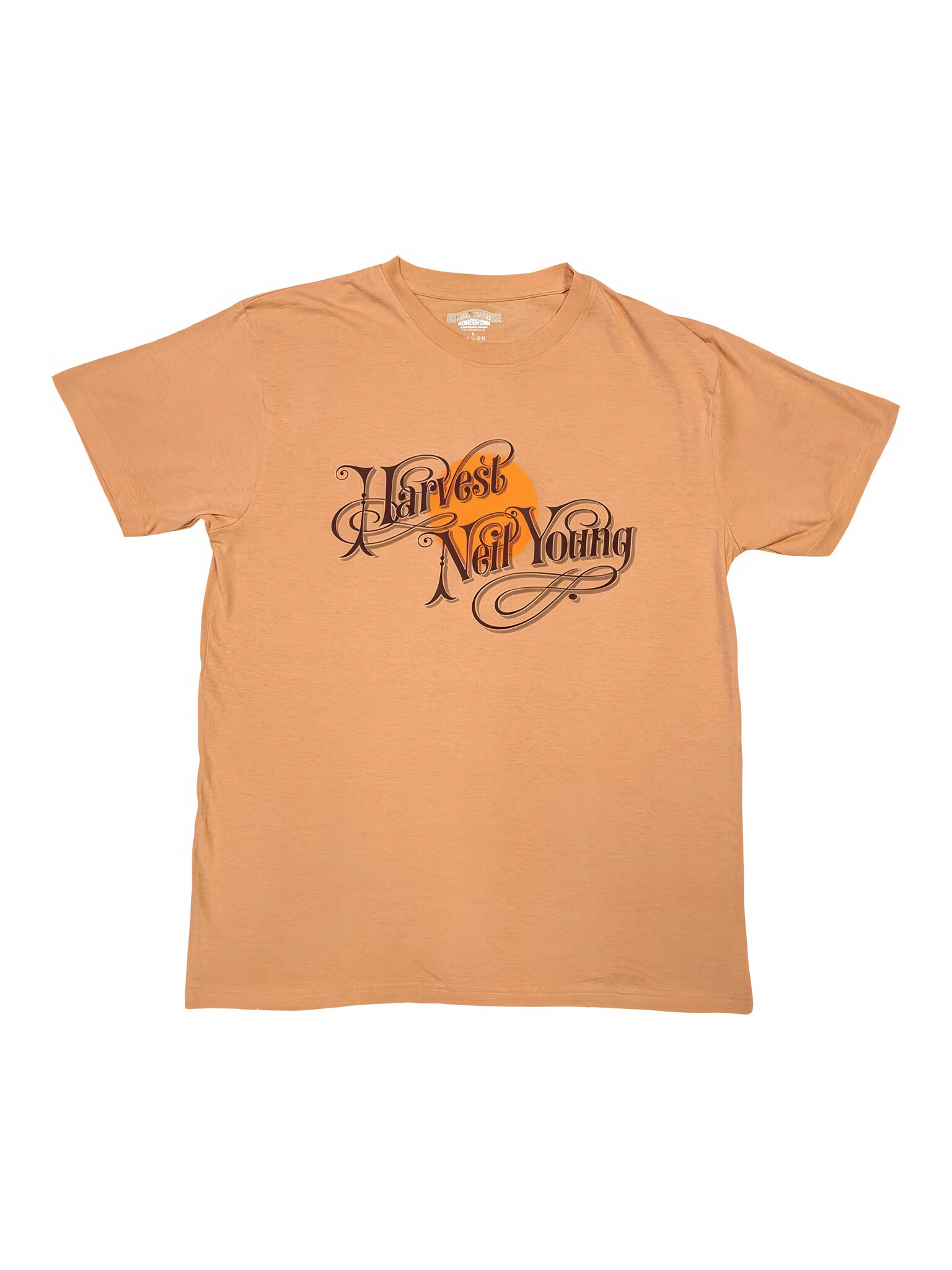 An official licensed Neil Young T-Shirt featuring the Harvest design motif