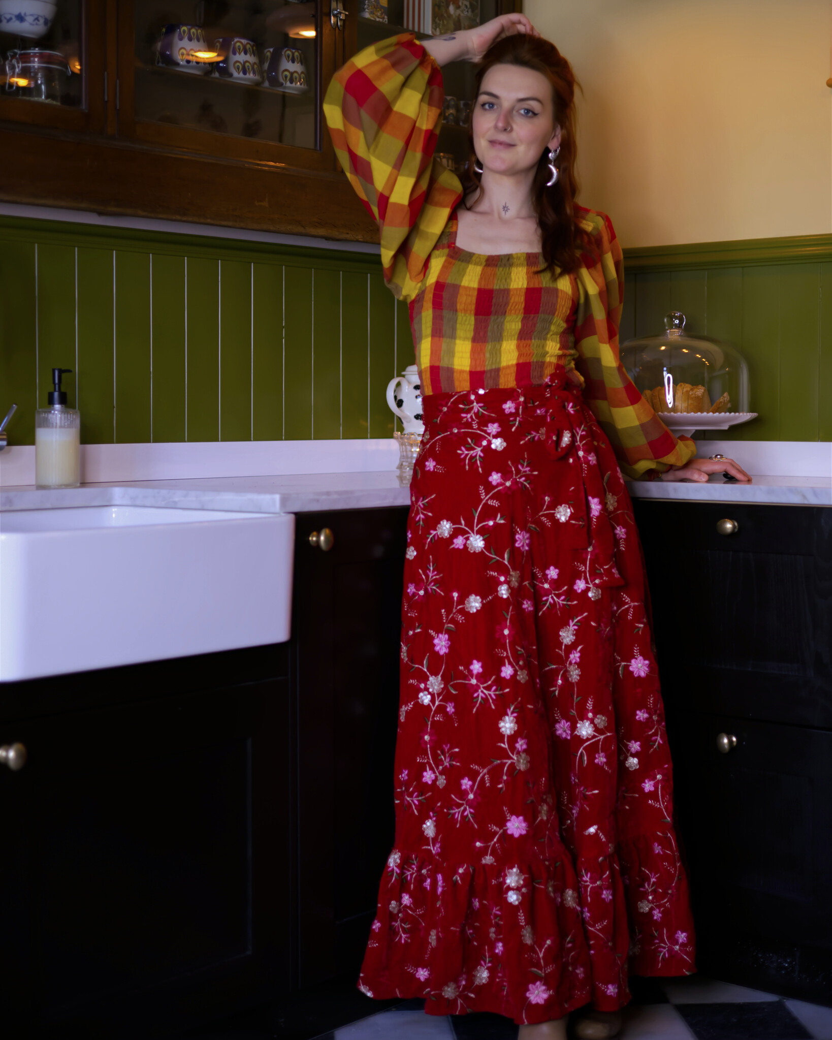 Stunning top with wide balloon sleeves, made of light cotton. The smocked bodice fits seamlessly and is comfortable to wear.