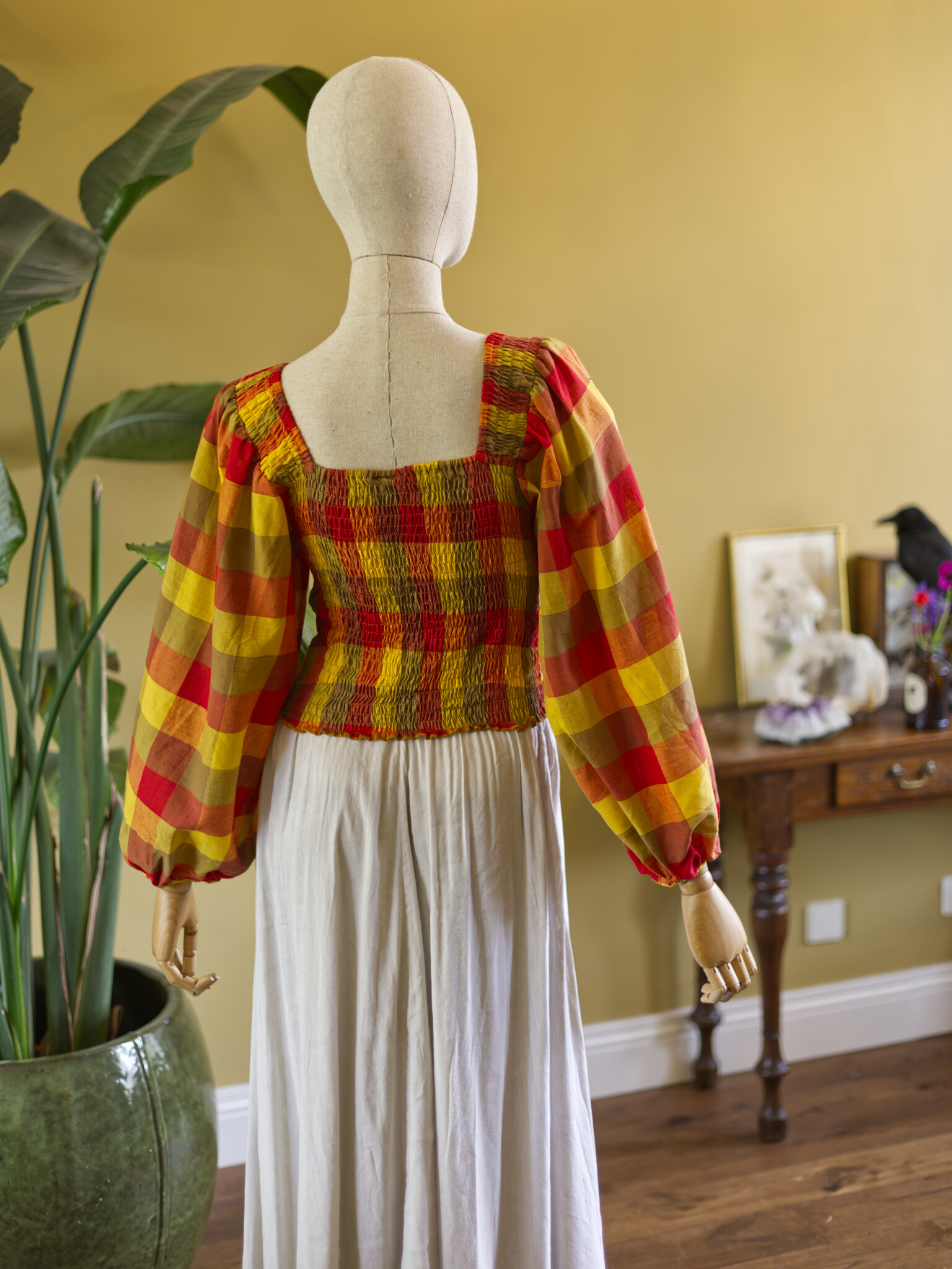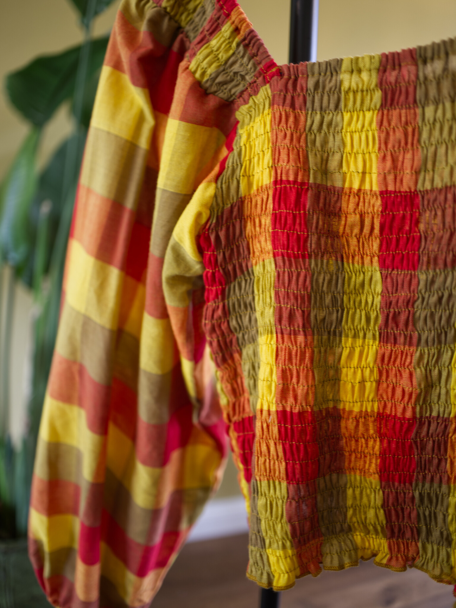Elegant smocked blocked blouse with balloon sleeves, and a touch of magic