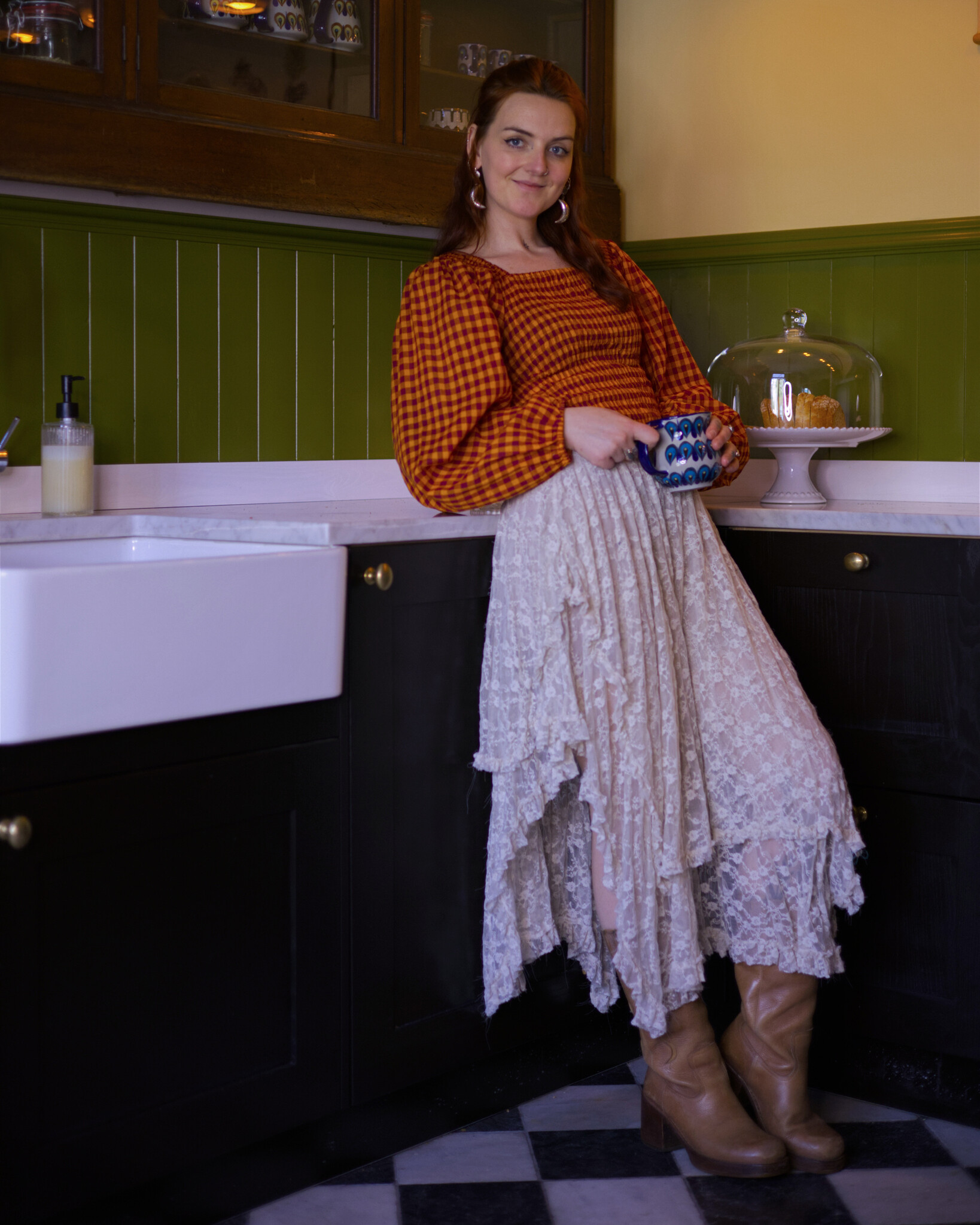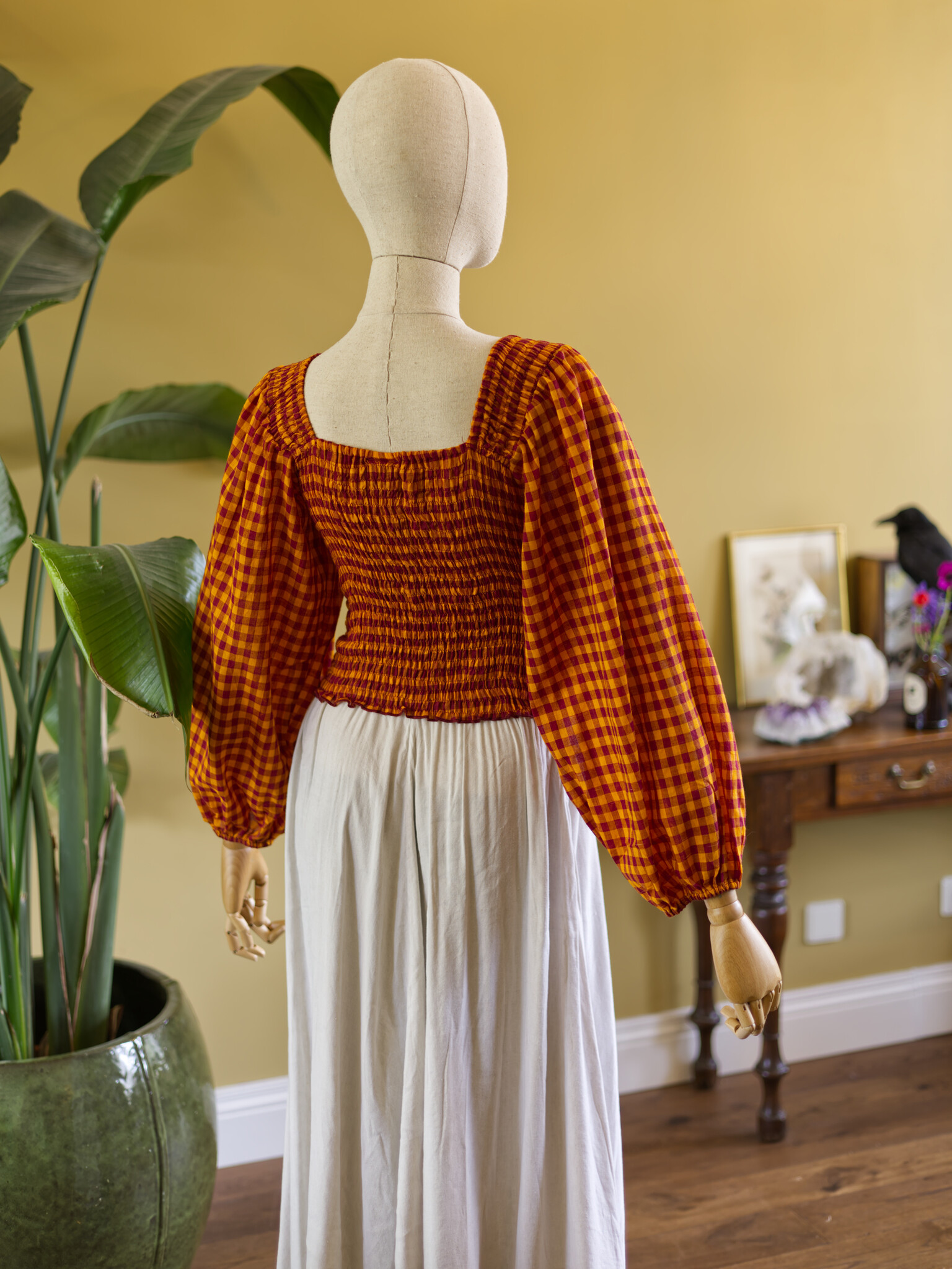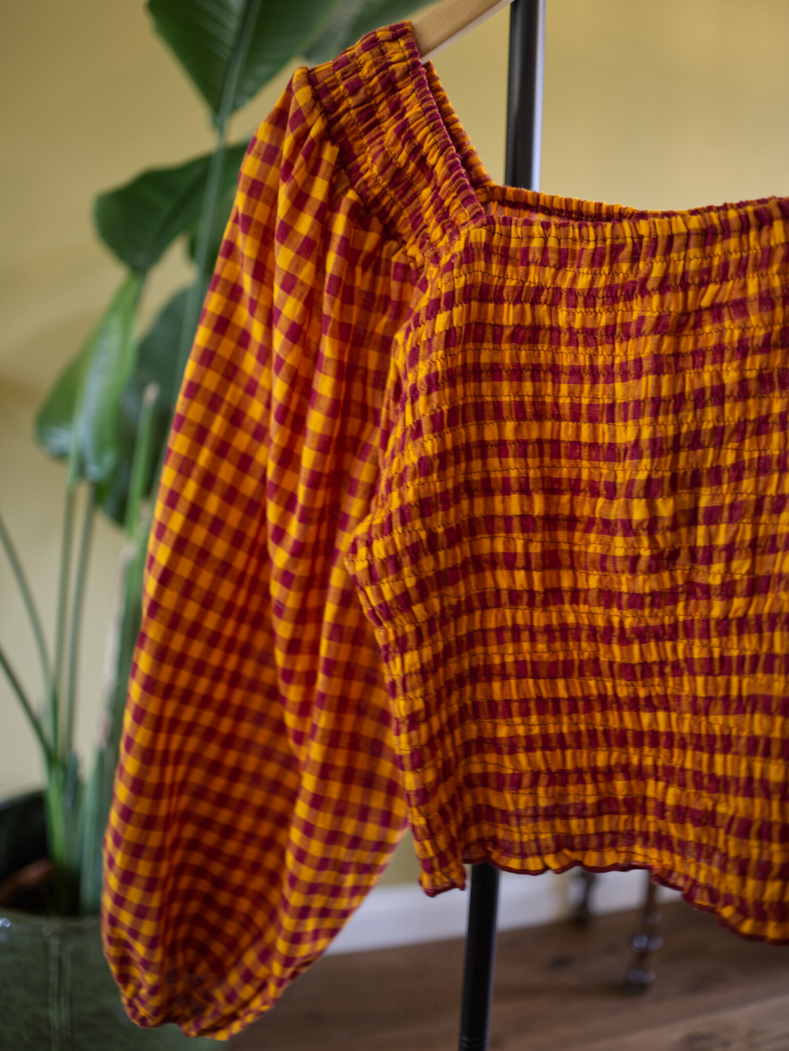 Elegant smocked Gingham blouse with balloon sleeves, and a touch of magic