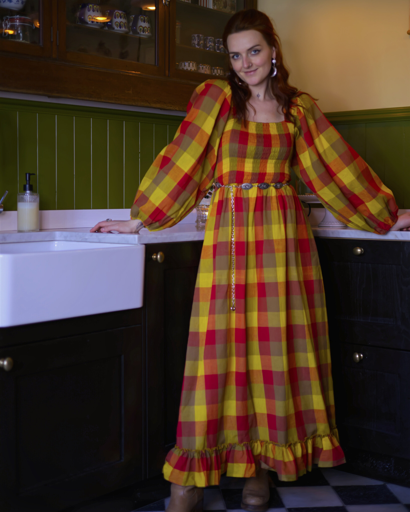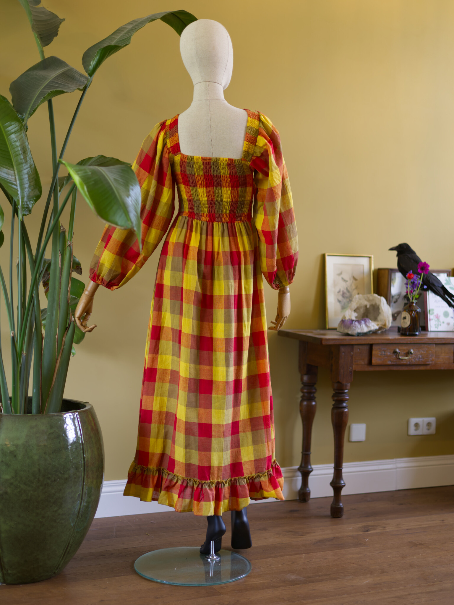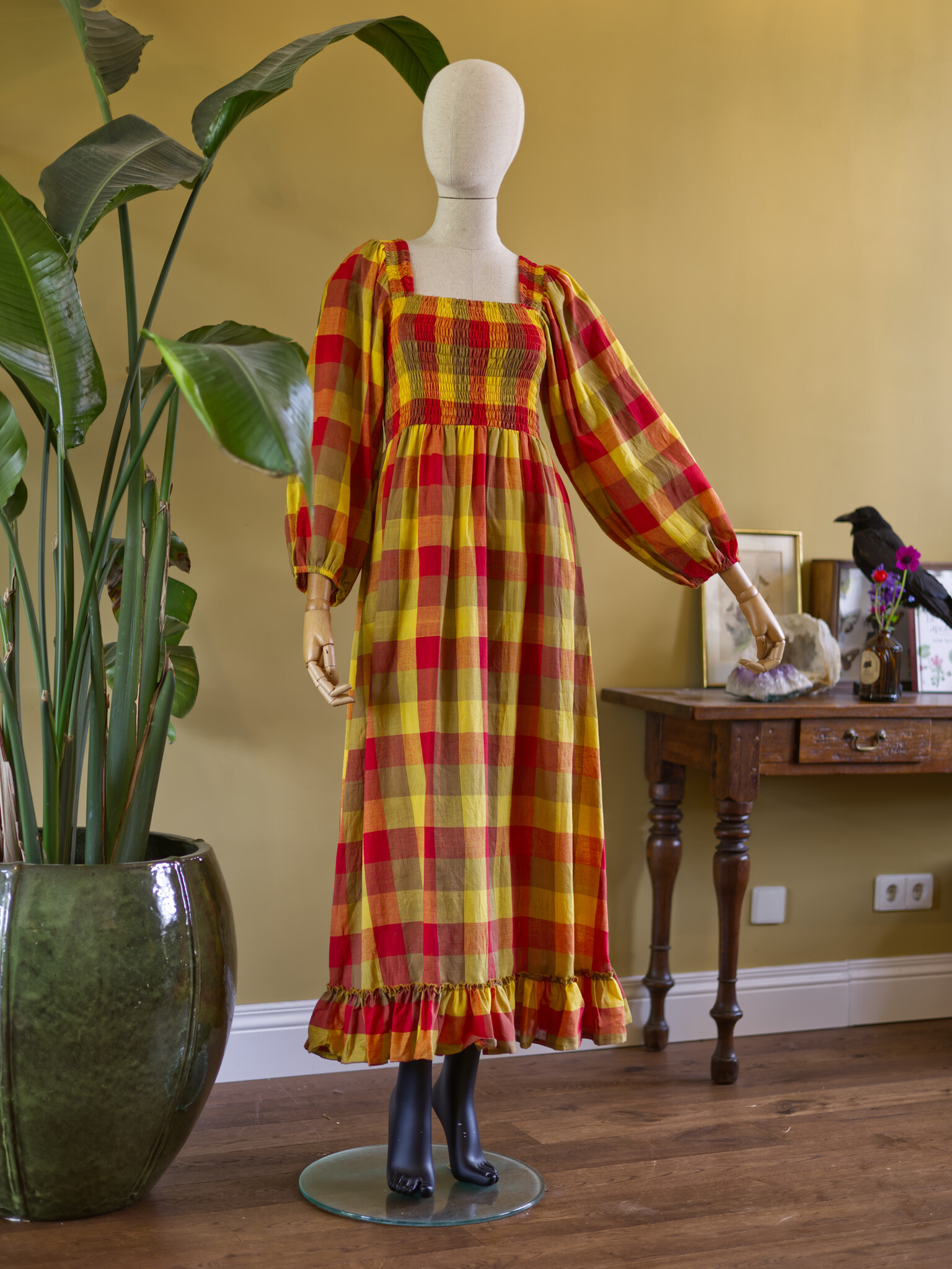 Stunning dress with wide balloon sleeves, made of light cotton. The smocked bodice fits seamlessly and is comfortable to wear.