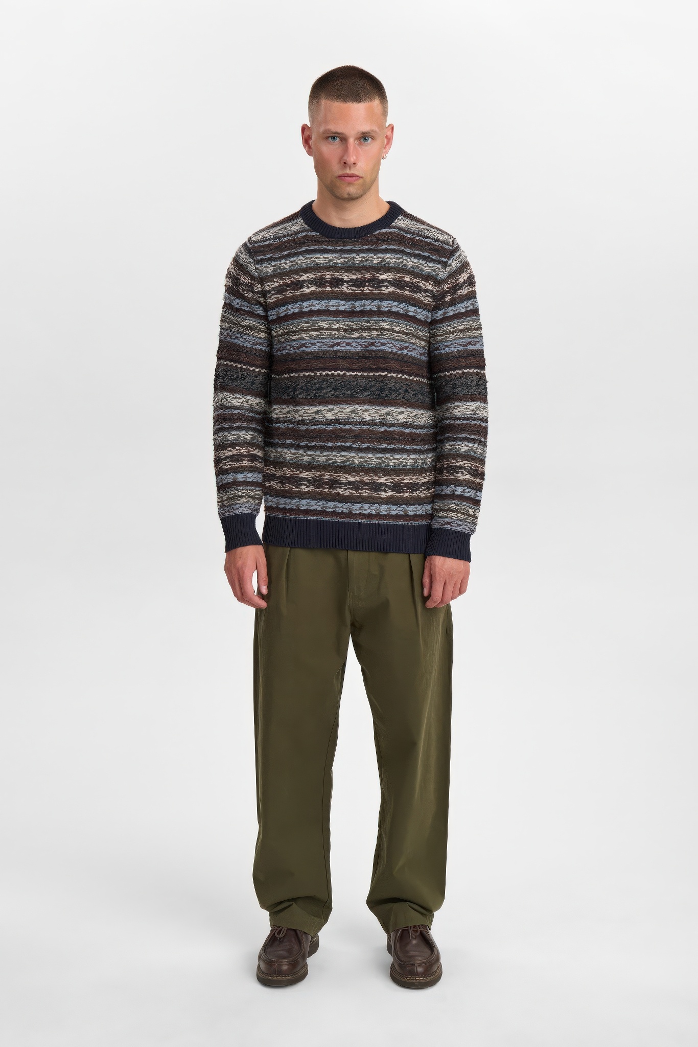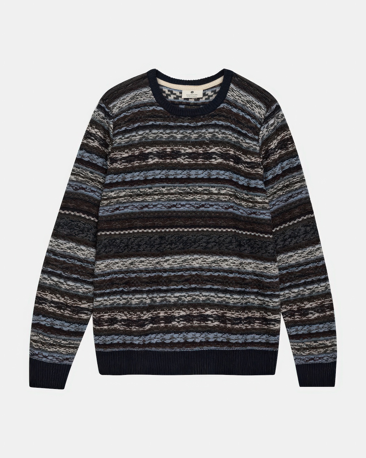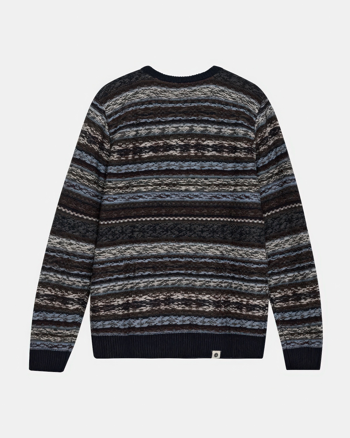 Patroongebreide trui in sky captain, gemaakt van merinowolmix met gerecycled nylon.