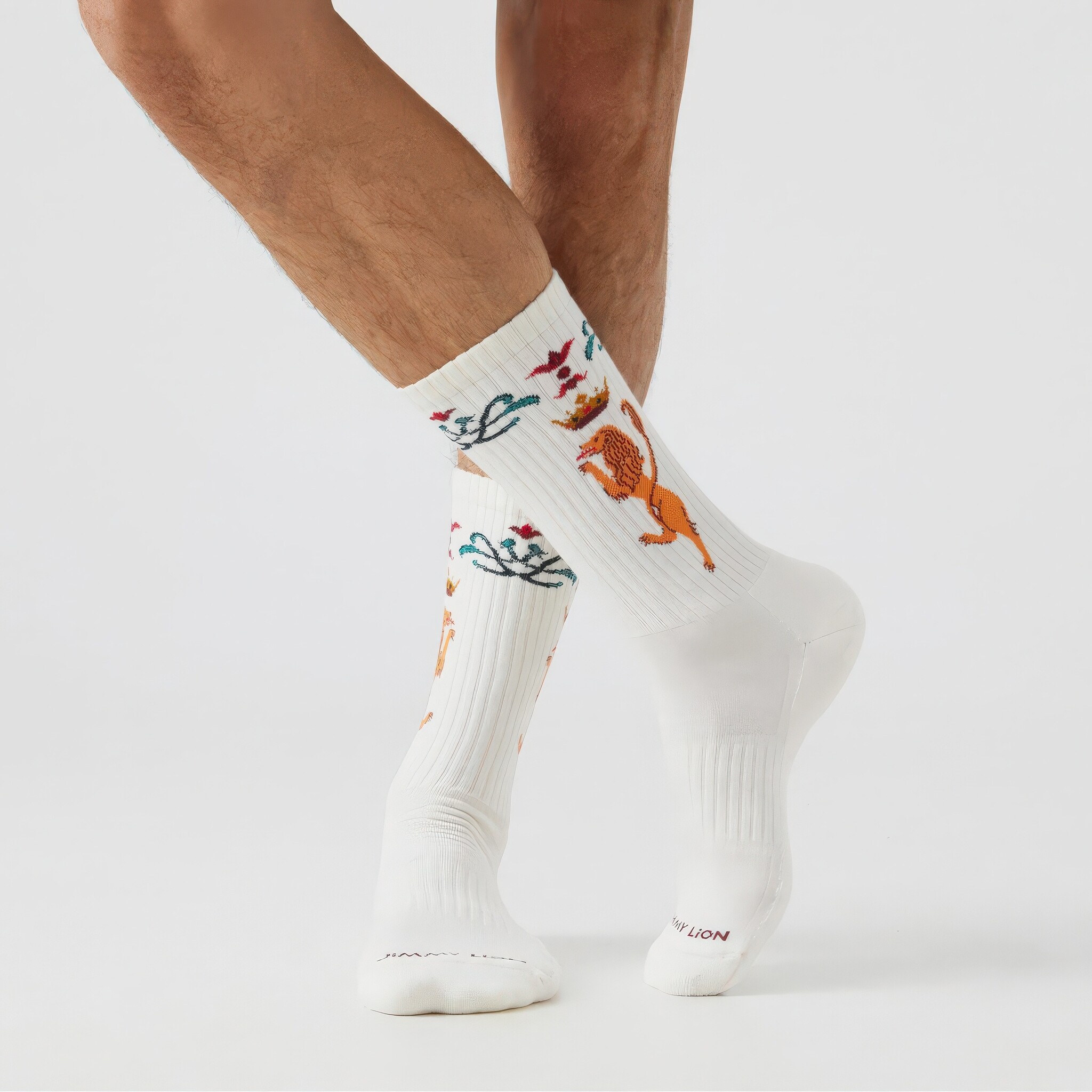 Jimmy Lion ♣ Beige Athletic Brianda Lion Crown Socks