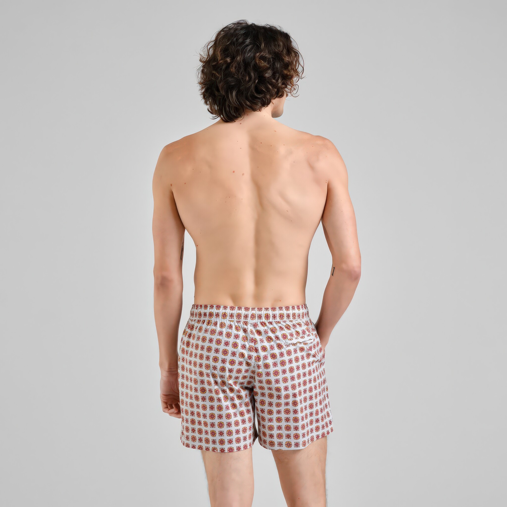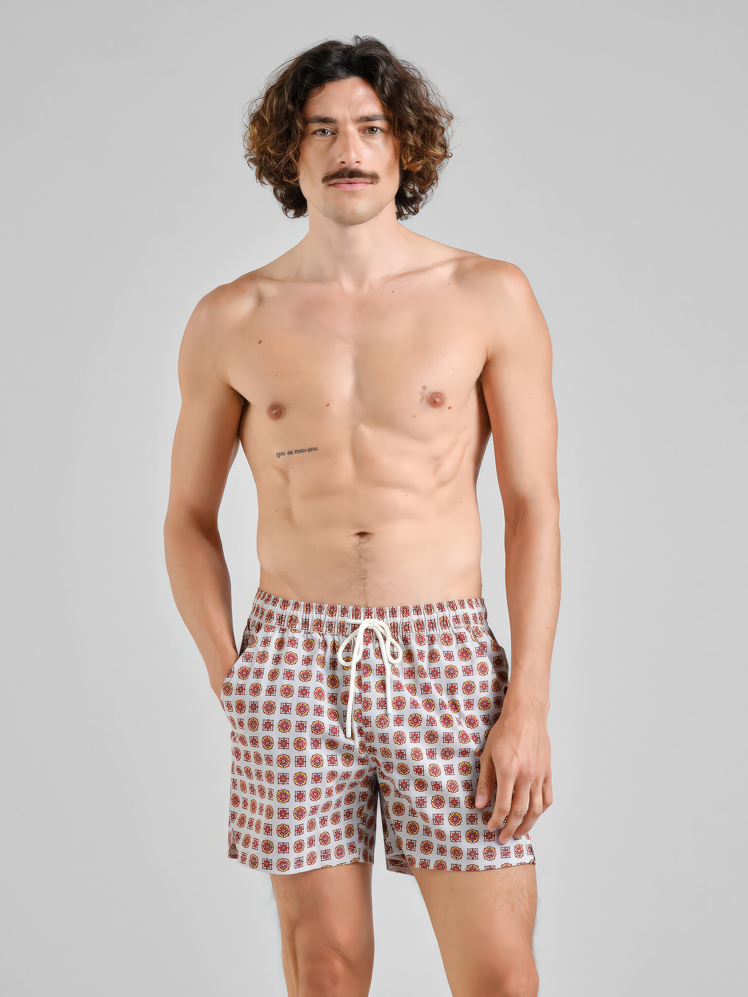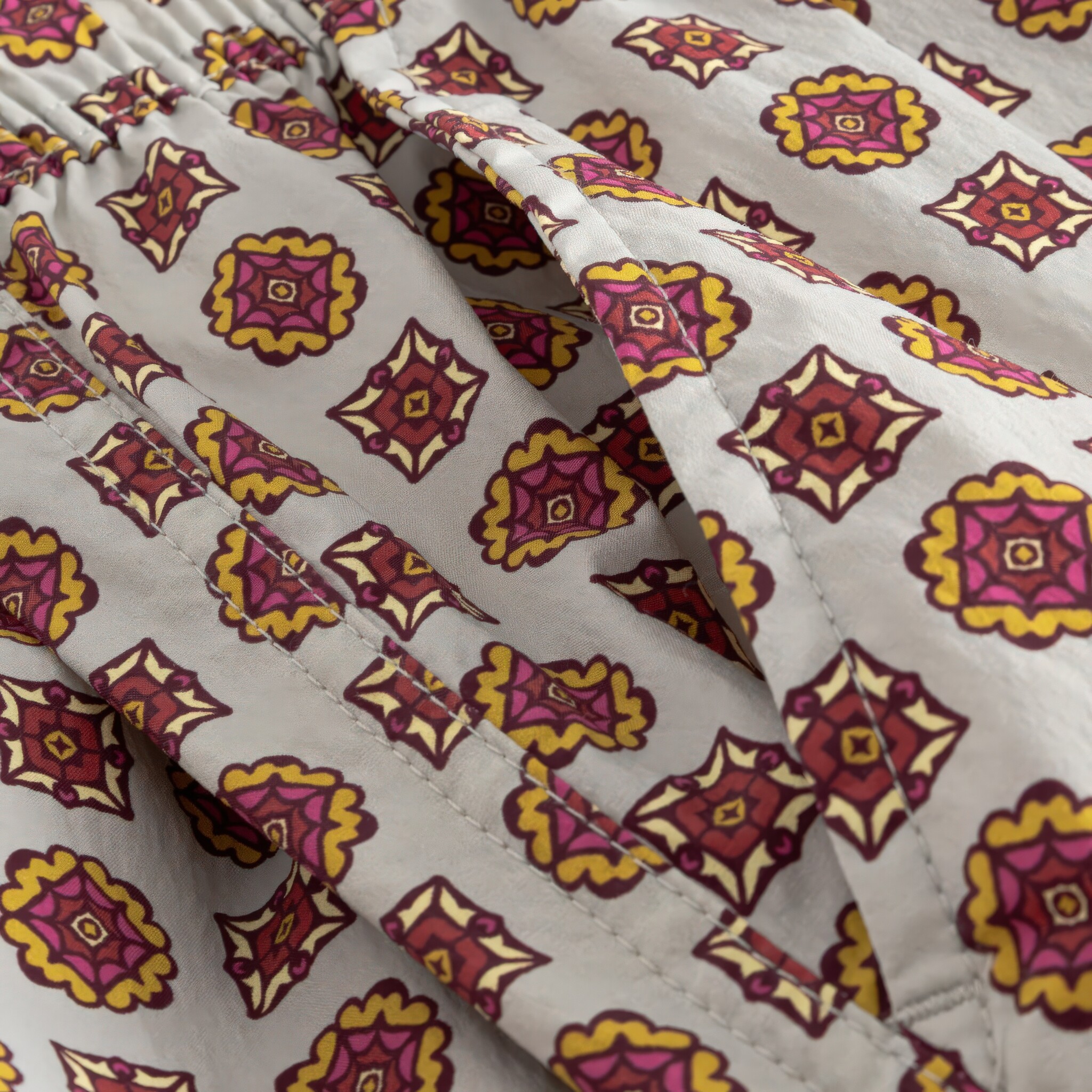 Korte zwembroek van gerecycled nylon met een elastische taille en koord, regelmatige leibhoogte en een relaxte pasvorm. Medallion Checks print in multicolour op lichte ondergrond. Gevoerd met mesh.