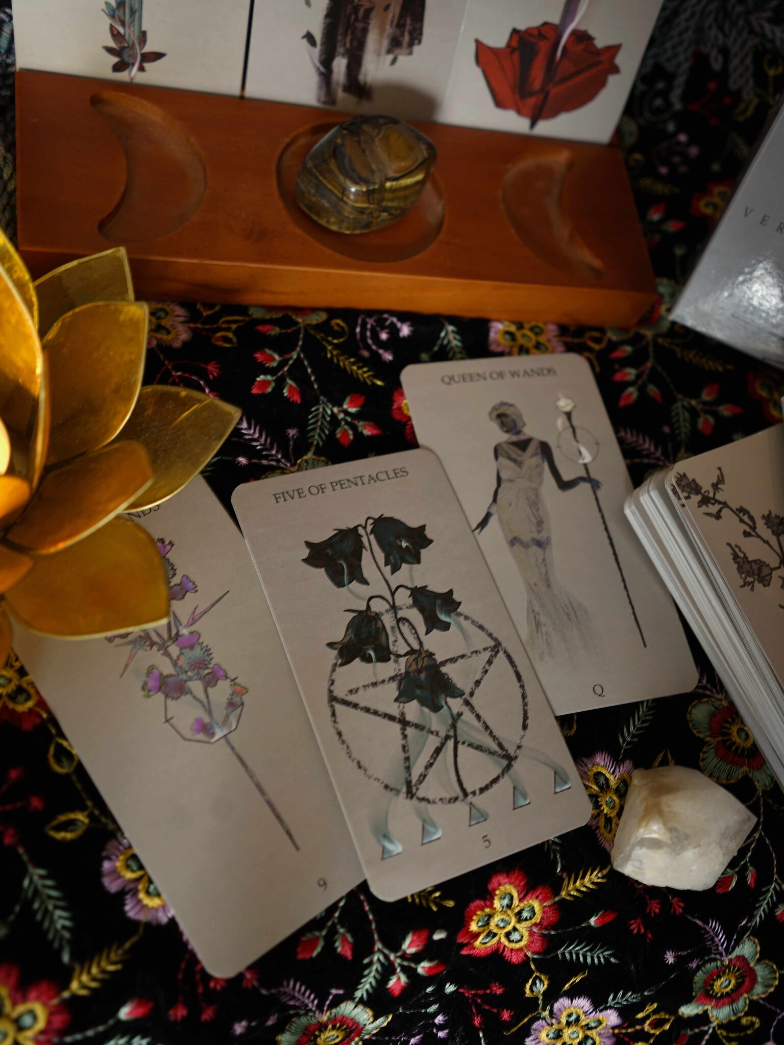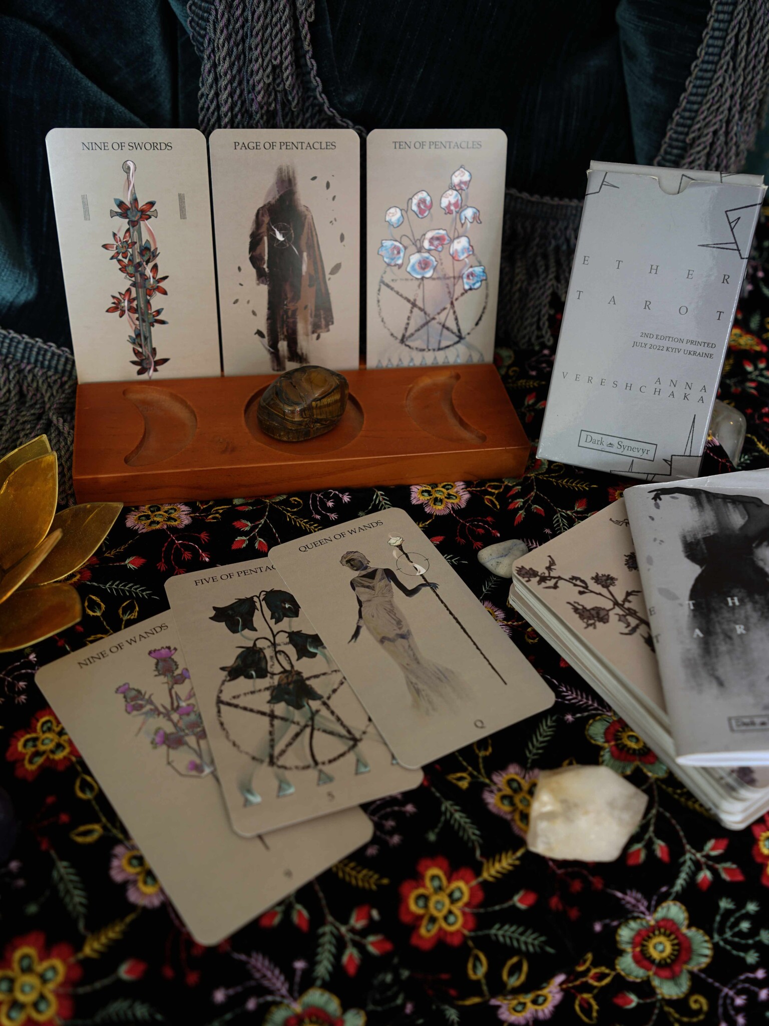 Verhoog je Rider Waite tarot-oefening met het Ether Tarot Deck - een betoverende fusie van kunst en waarzeggerij die de mystieke wisselwerking tussen natuur, wiskunde en het etherische onthult.
