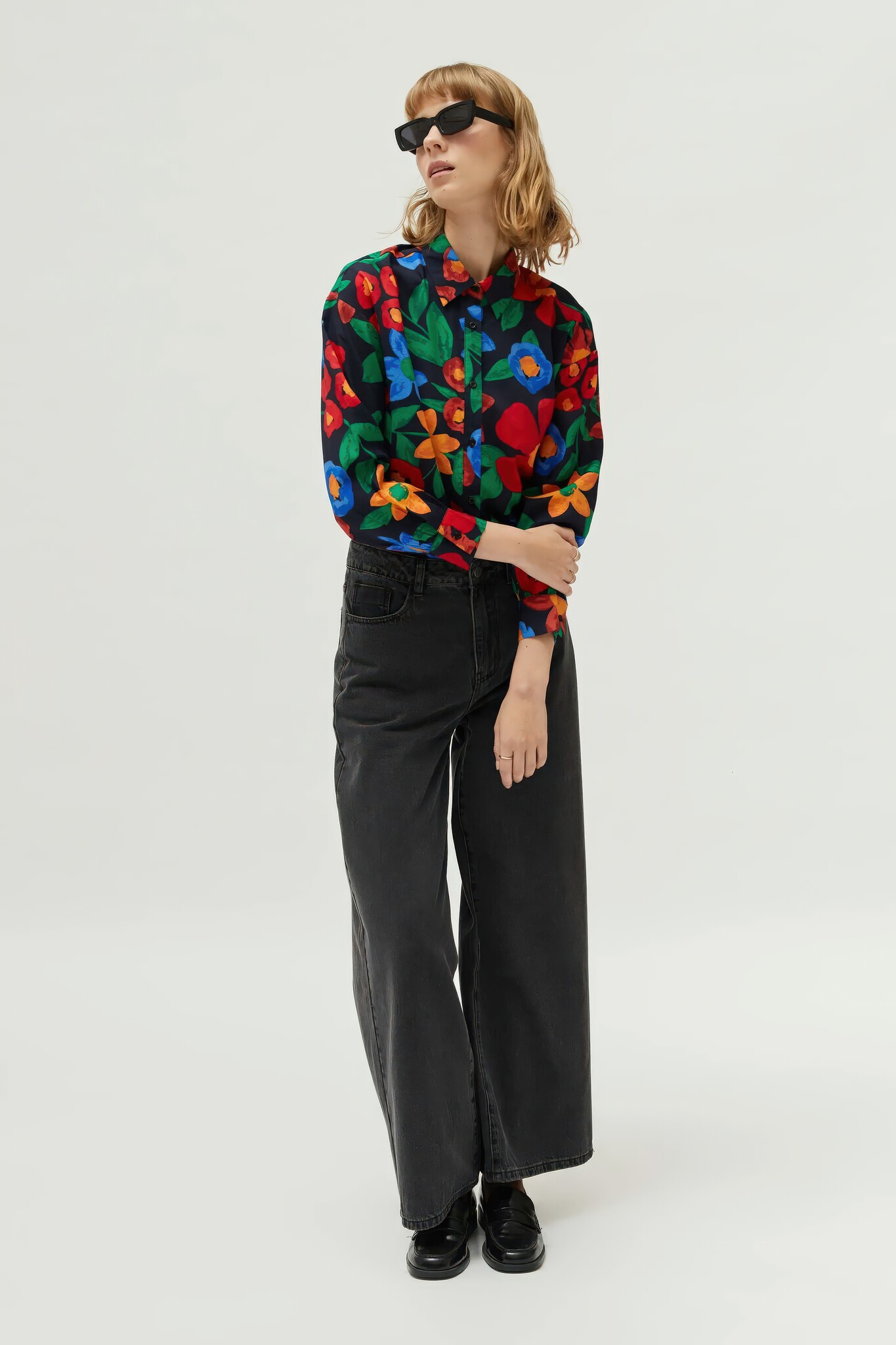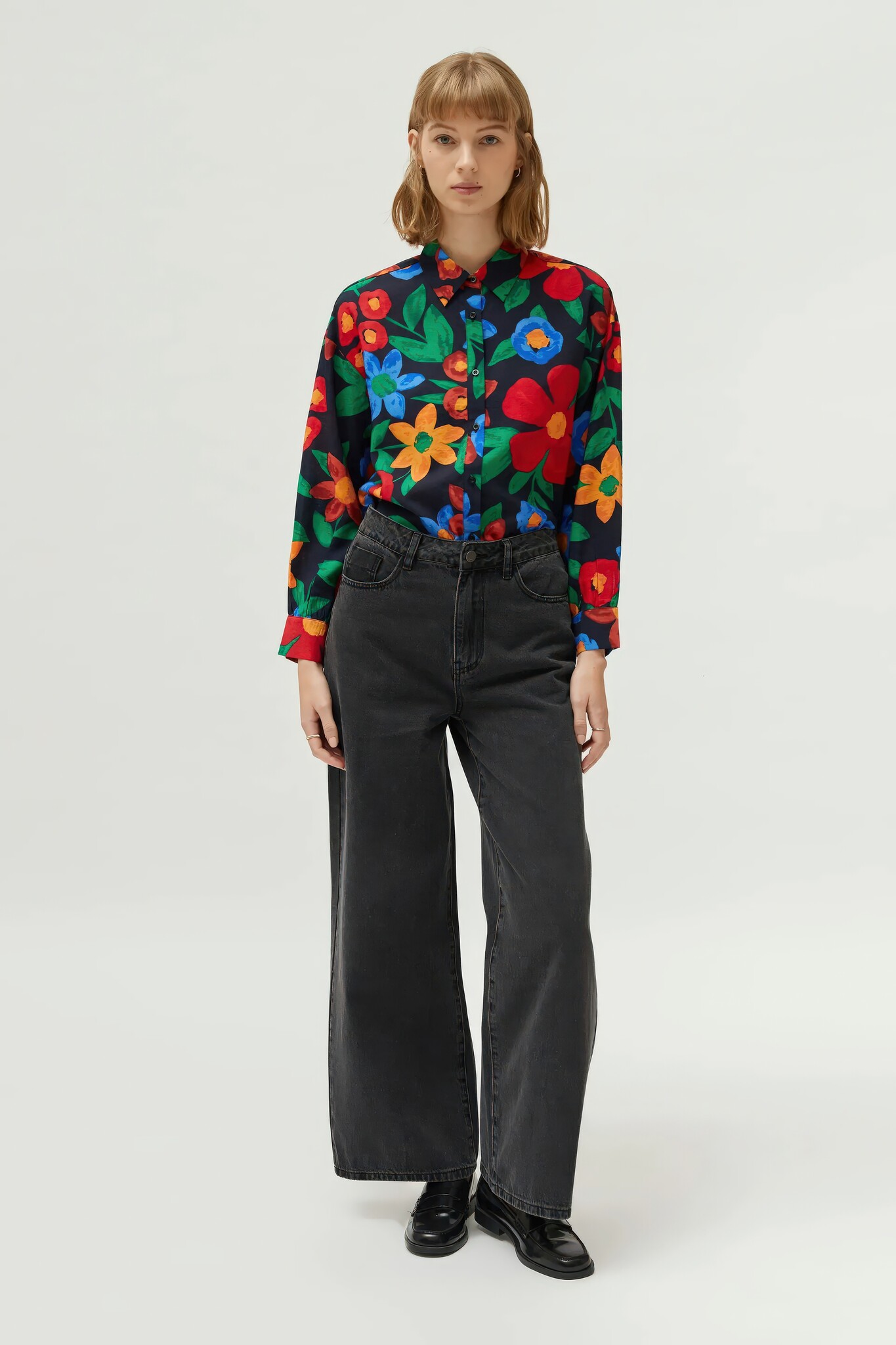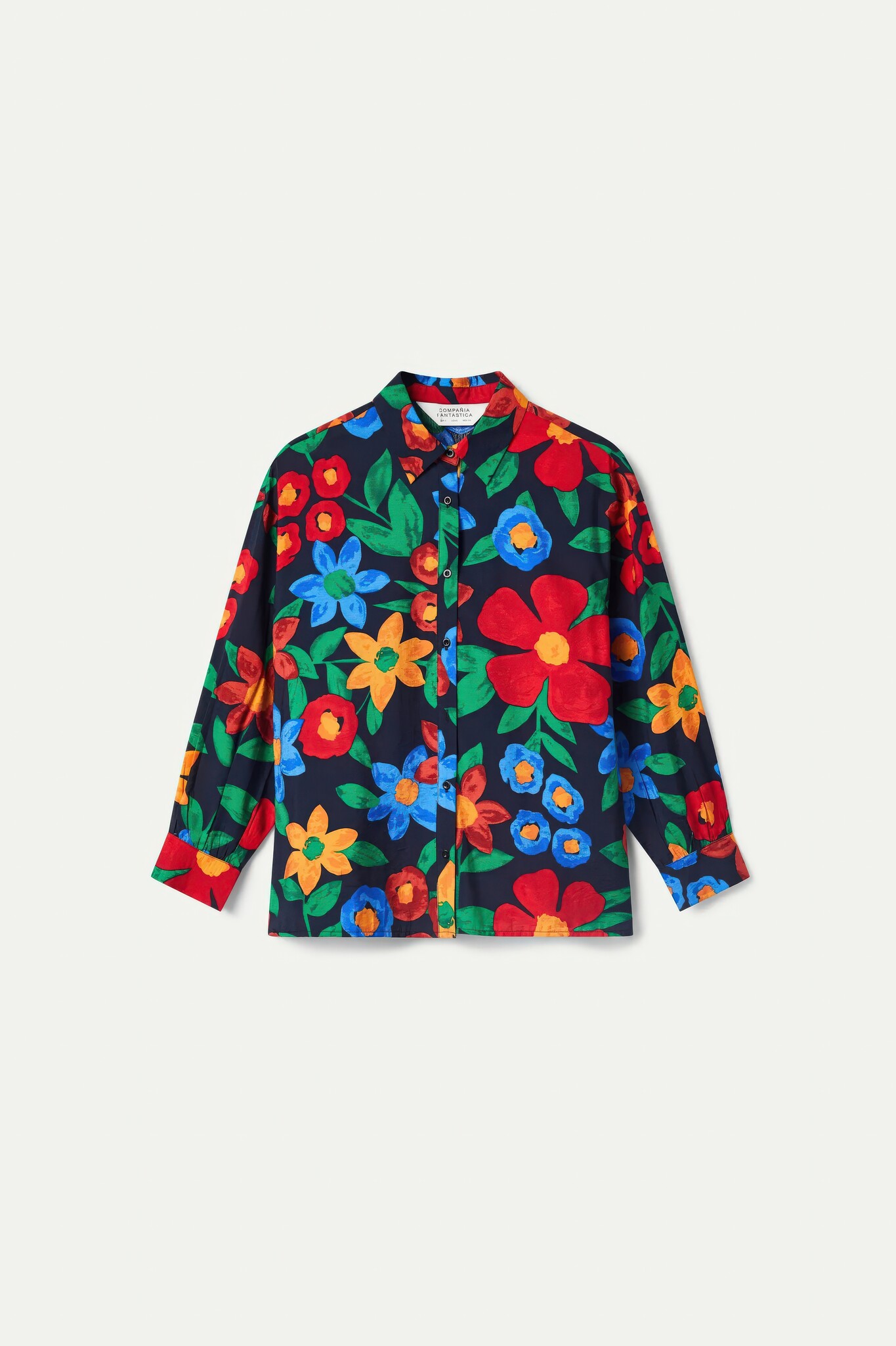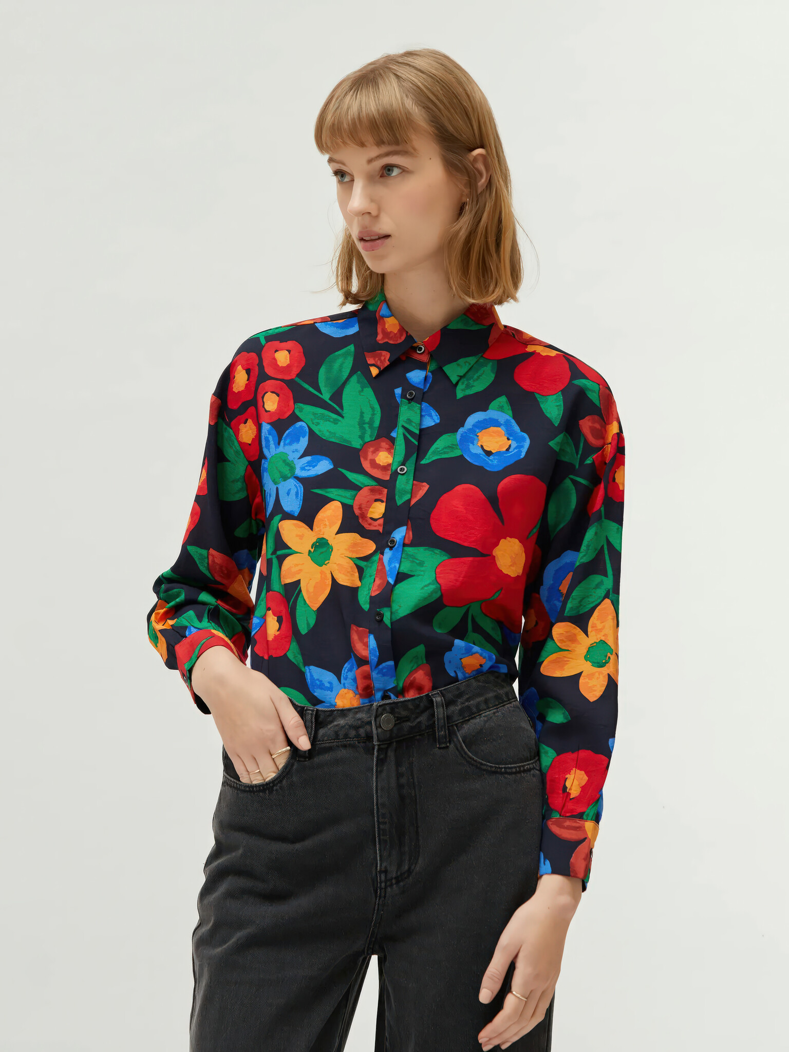 Viscose crêpe overhemd met een meerkleurige bloemenprint. Het heeft een reverskraag, lange mouwen en een knoopsluiting aan de voorkant.