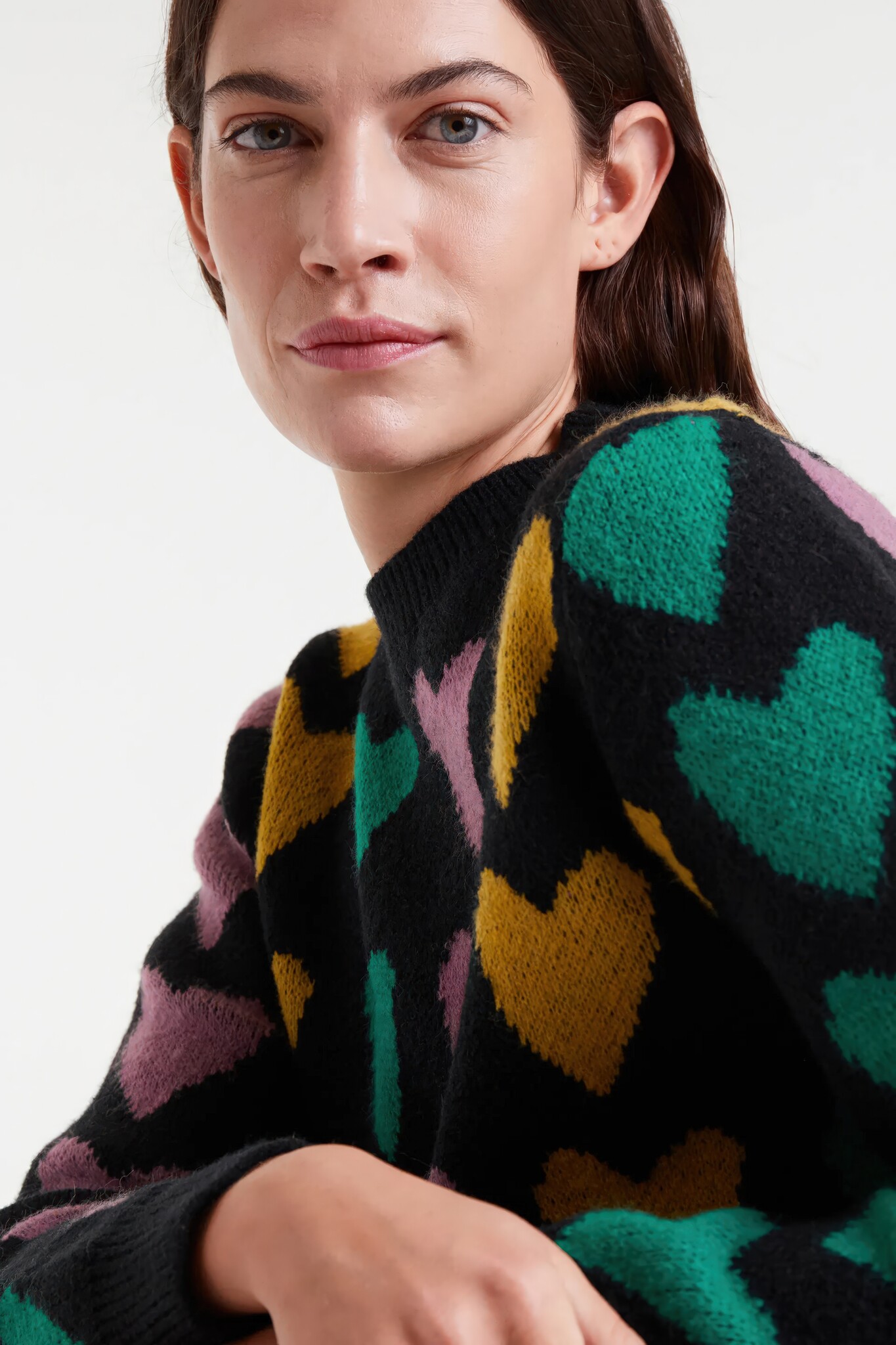 Gebreide jacquardtrui met Cupid-lijnenpatroon, ronde hals en lange mouwen.
