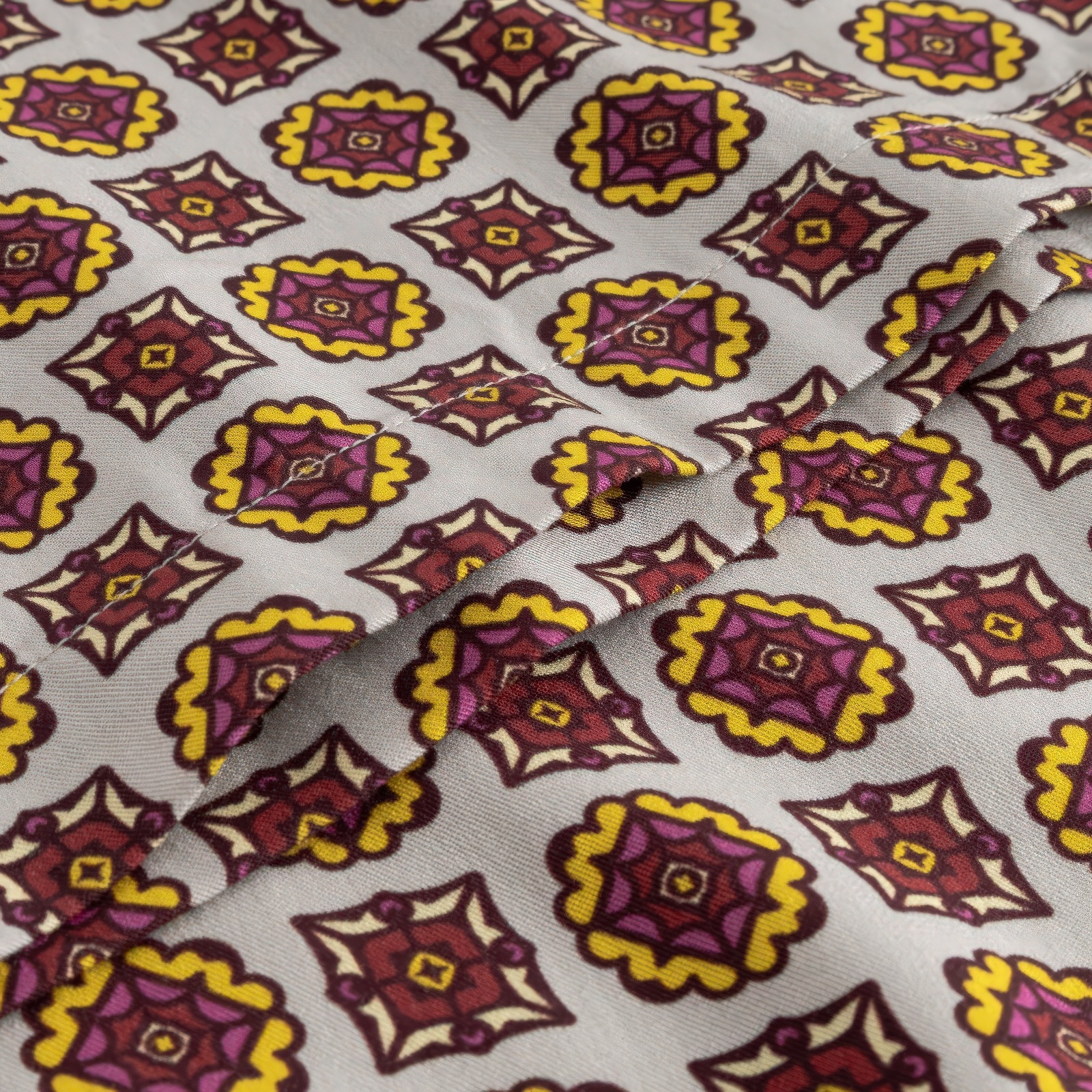 - Medallion checks print in bordeaux, paars en geel op gebroken witte ondergrond