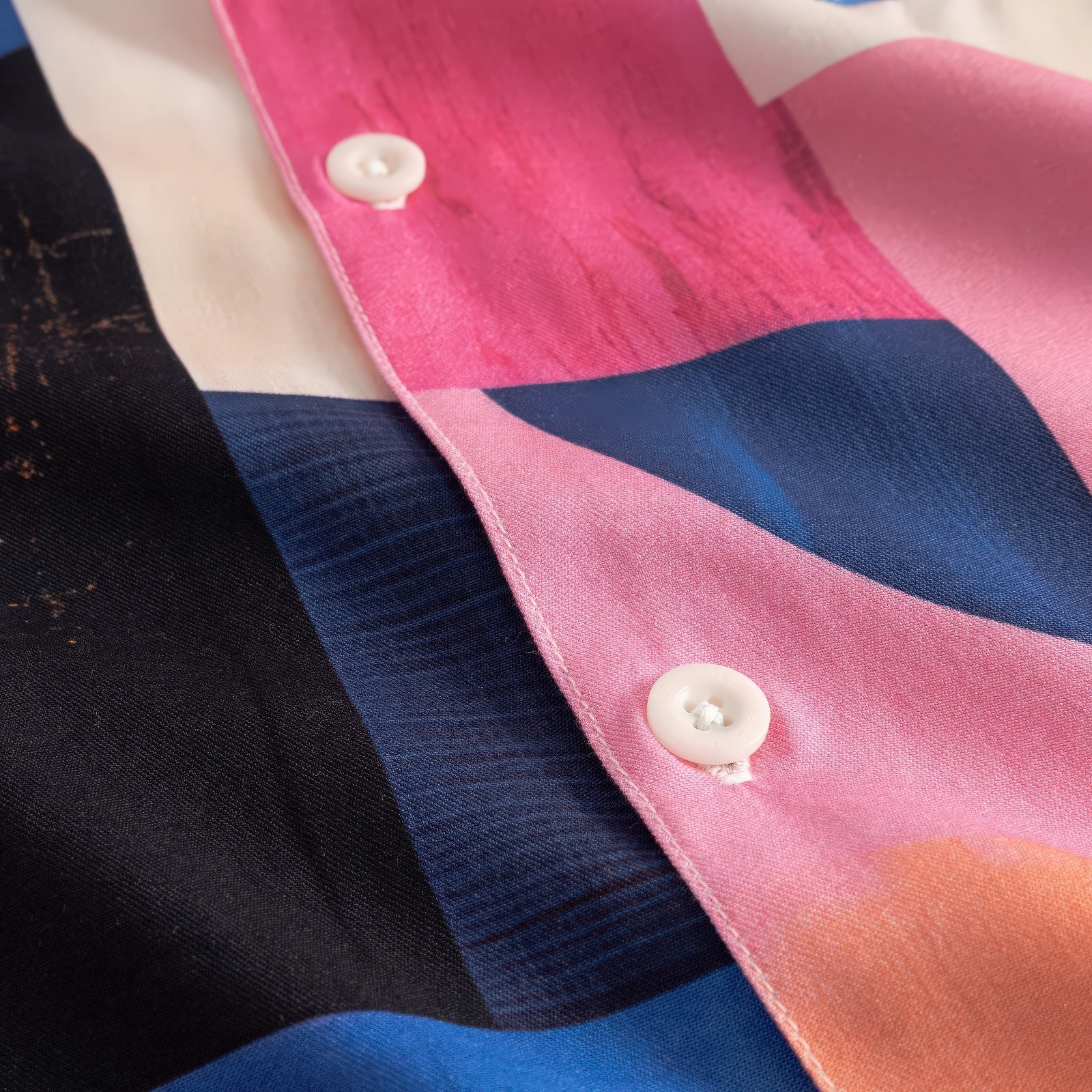 - Abstract blokkenprint in crème, blauw, roze, oranje en zwart