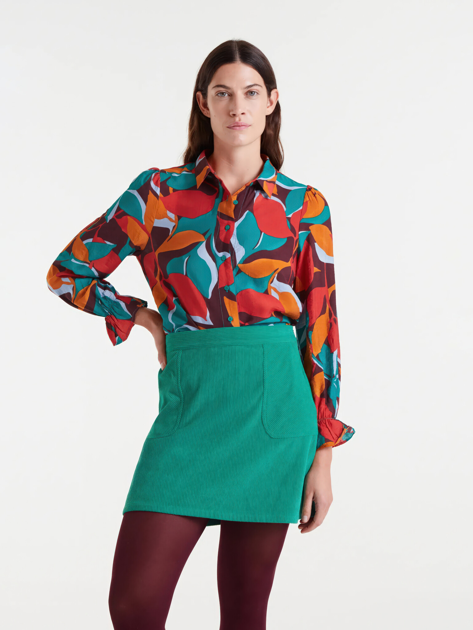 Luchtige crêpe blouse met Ponziana-print, kraag, lange mouwen en elastische ruchemanchetten.
