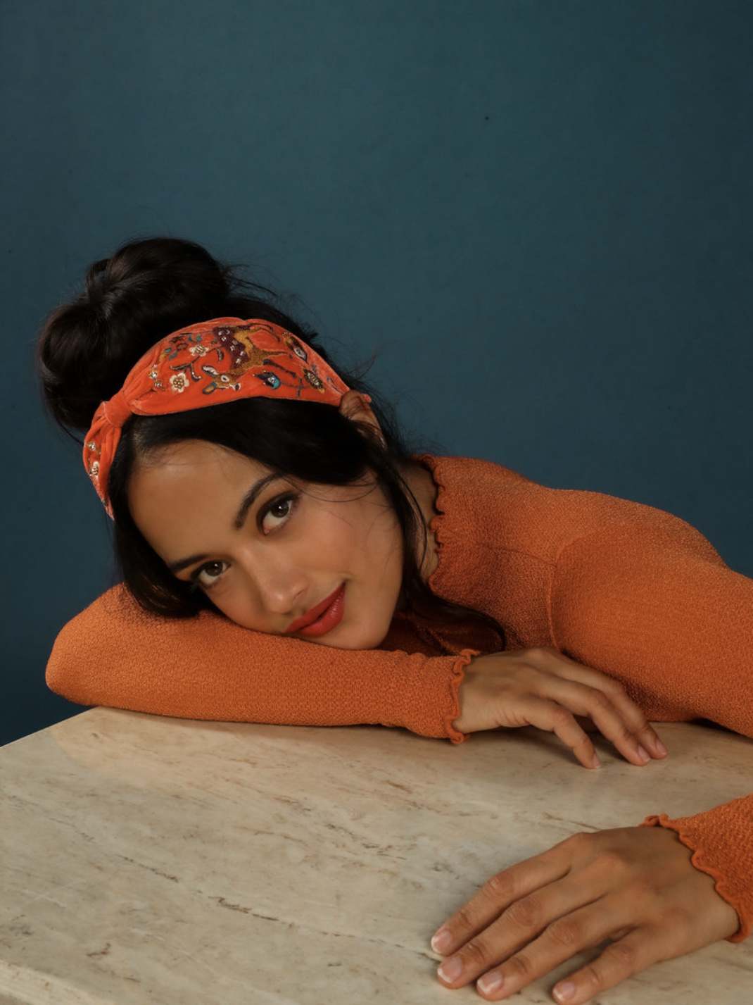 Oranje herten hoofdband met een prachtige mix van kleuren en texturen.