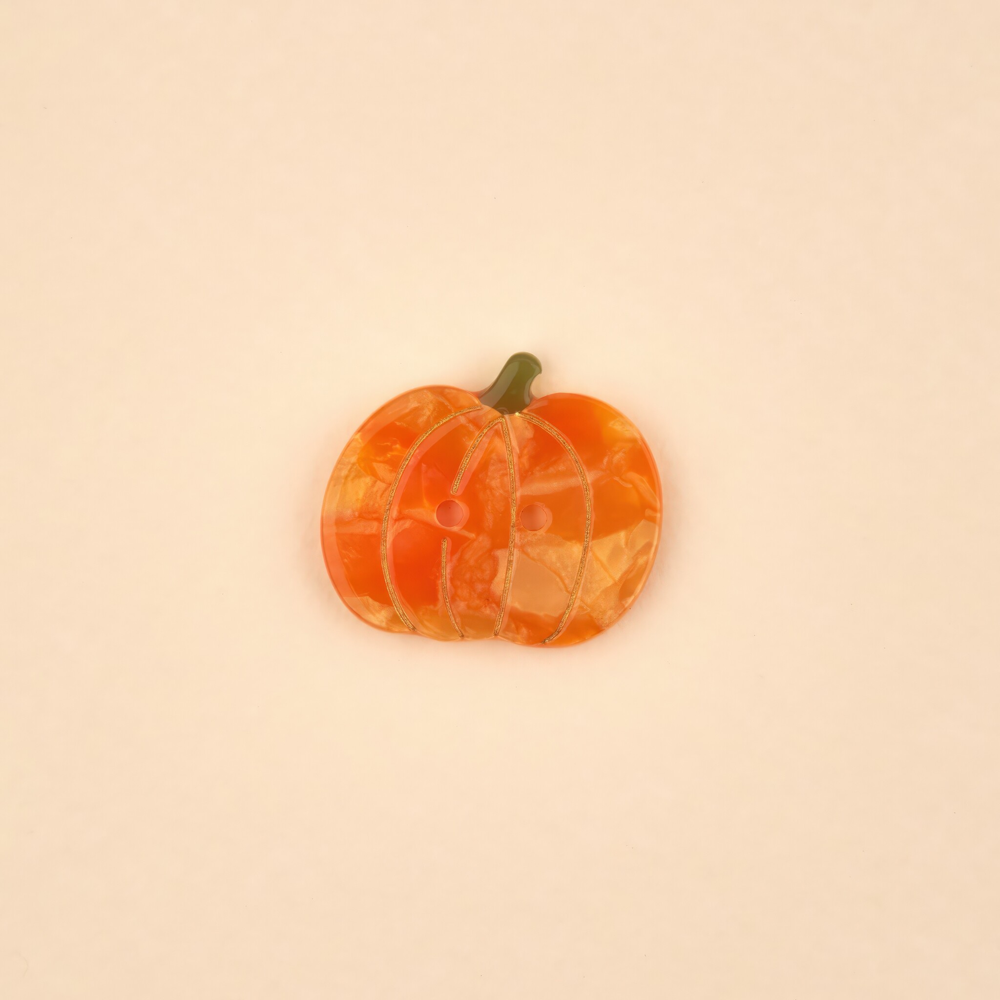 Set met knopen van celluloseacetaat in pompoenvorm, geschikt voor naaiprojecten en handwerk.