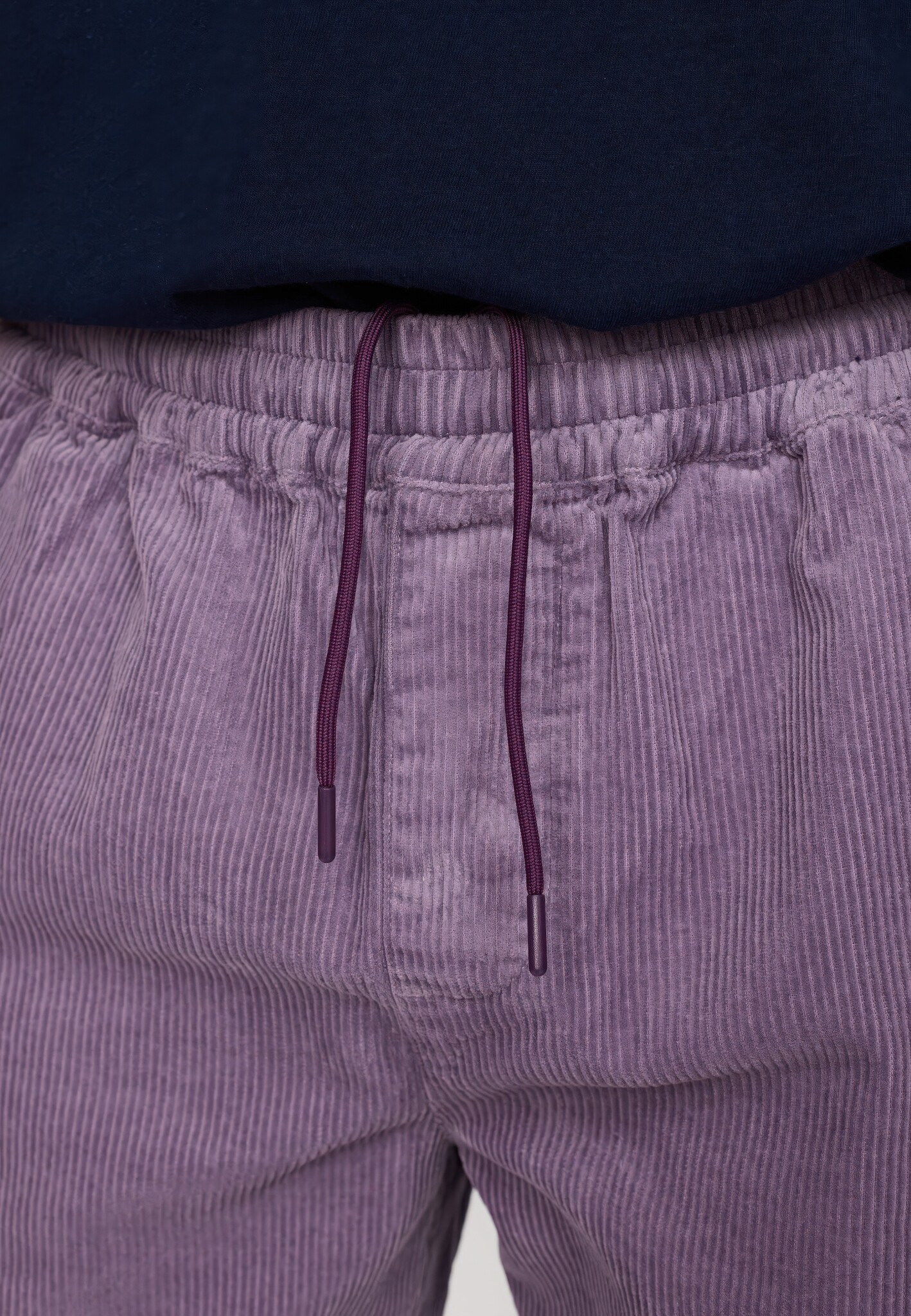 Iets langere casual shorts van biologisch katoenen corduroy (8 ribben) in paars met een zachte, fluweelachtige structuur. Elastische taille met verstelbaar koord, schuine steekzakken met verborgen rits en een afgeronde achterzak.