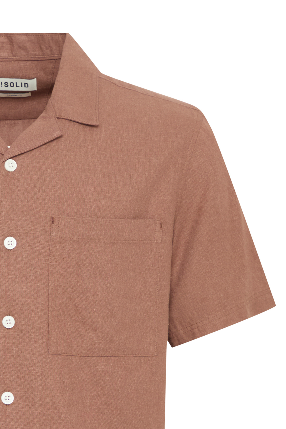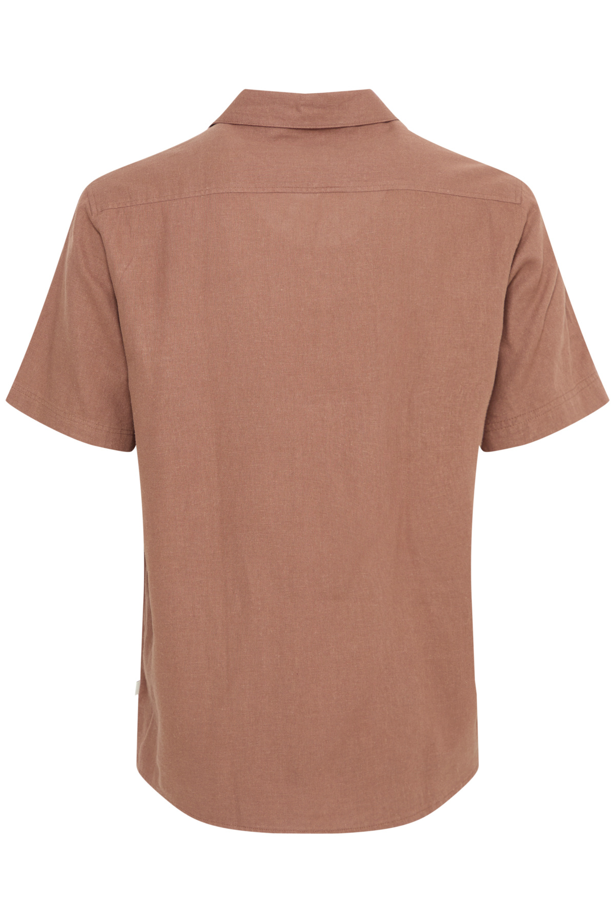 Korte mouwen shirt in acorn kleur. Losvallende pasvorm met klassieke kraag en knoopsluiting. Gemaakt van een luchtige linnen-viscose mix.
