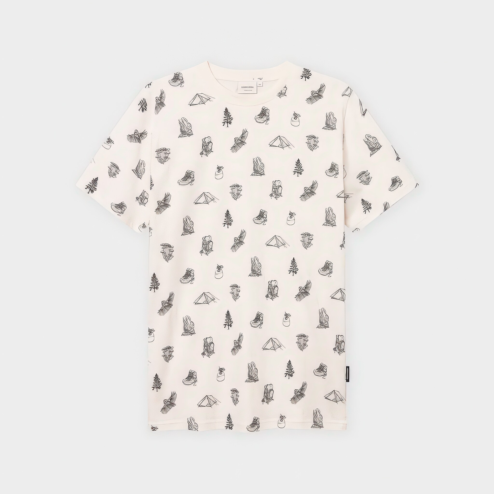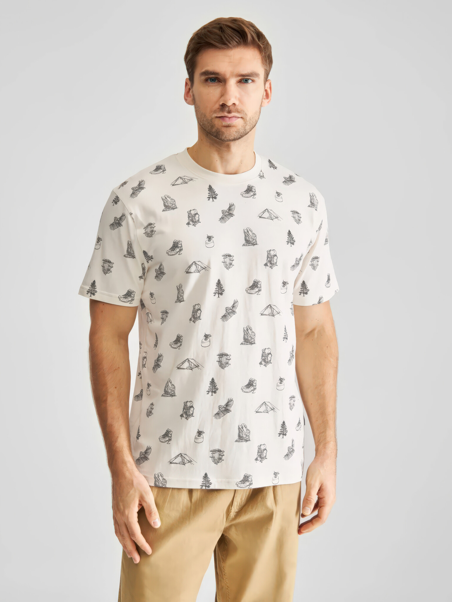 T-shirt met ronde hals en regular fit, gemaakt van biologisch katoen in offwhite kleur met all-over print.
