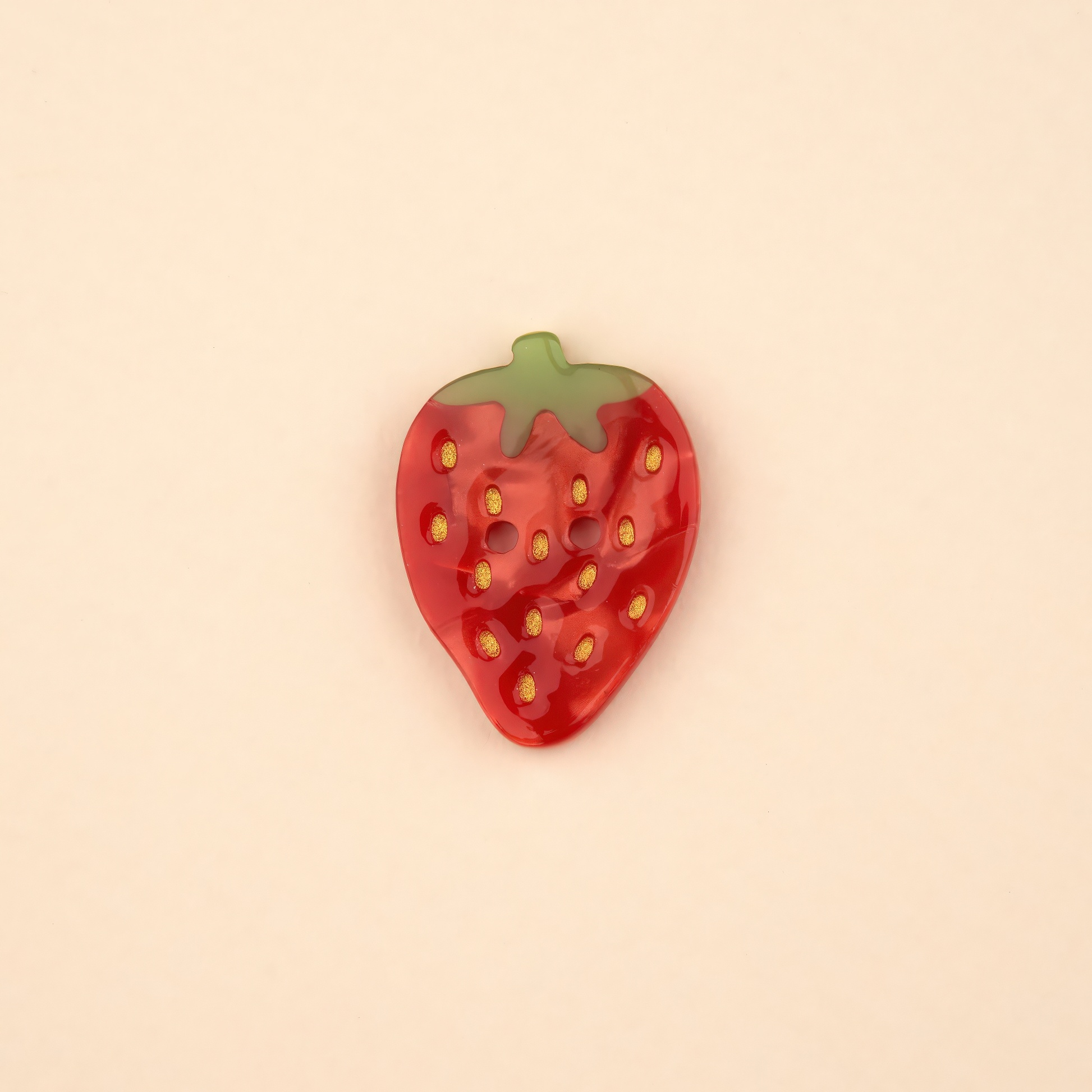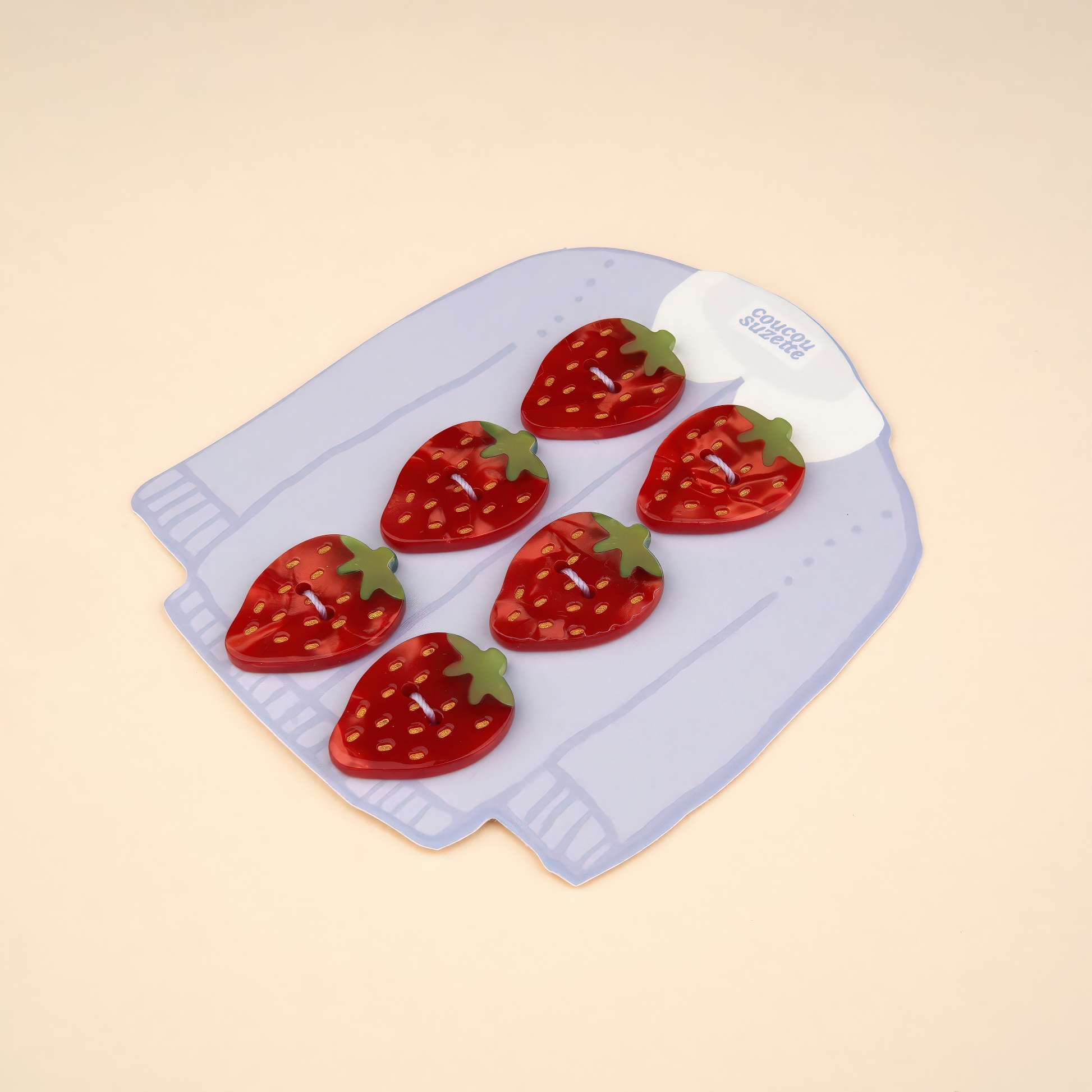 Set knopen in de vorm van aardbeien, gemaakt van celluloseacetaat.
