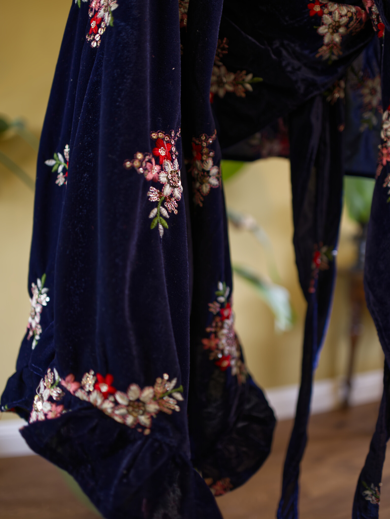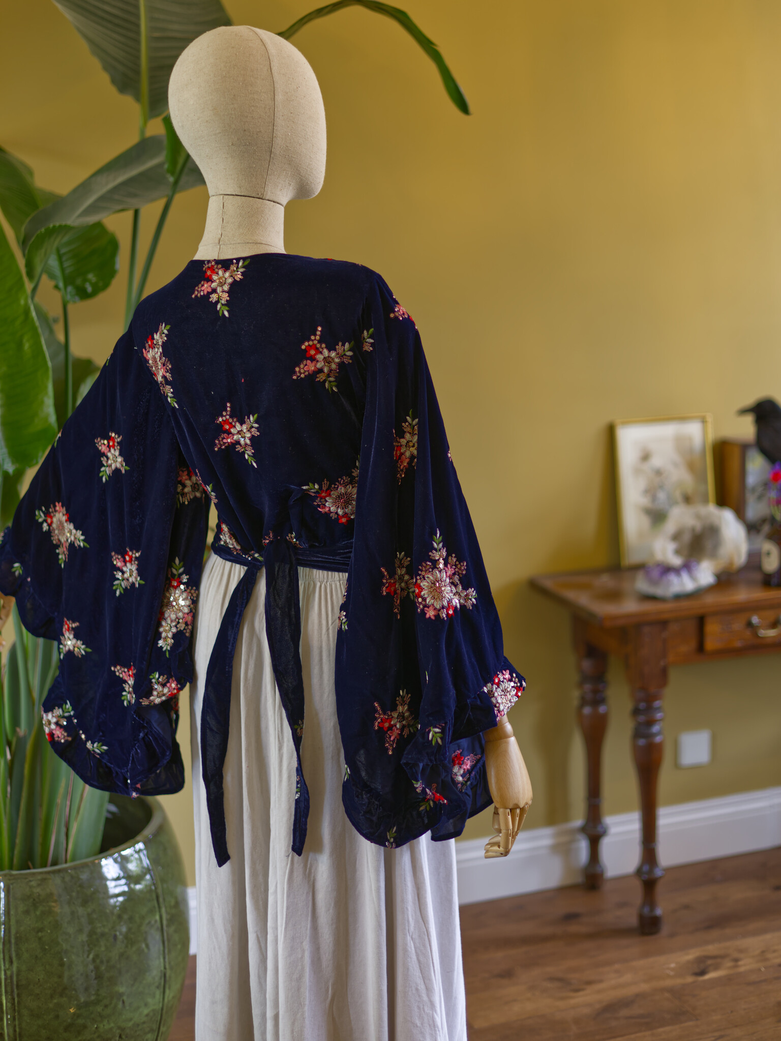 Ontdek onze handgemaakte blouse, prachtig gemaakt van geborduurd fluweel en een kenmerkend stuk van ons eigen label