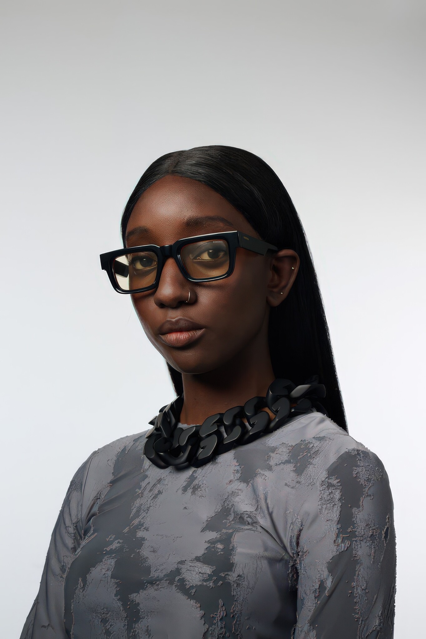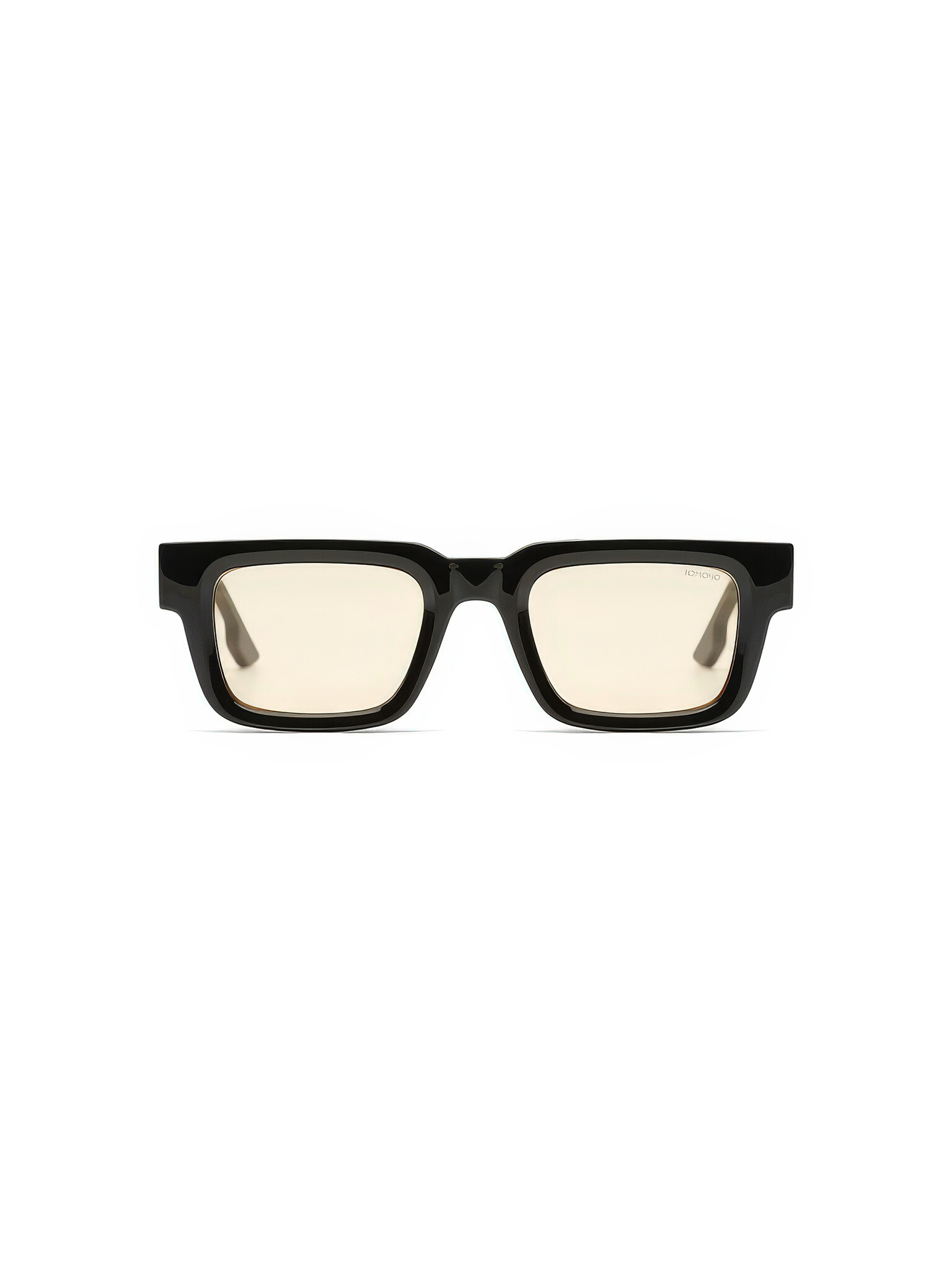 Vierkante zonnebril in zwart BioNylon montuur met gele Cat. 1 glazen en 100% UV400 bescherming. Inclusief poetsdoekje en hoesje.